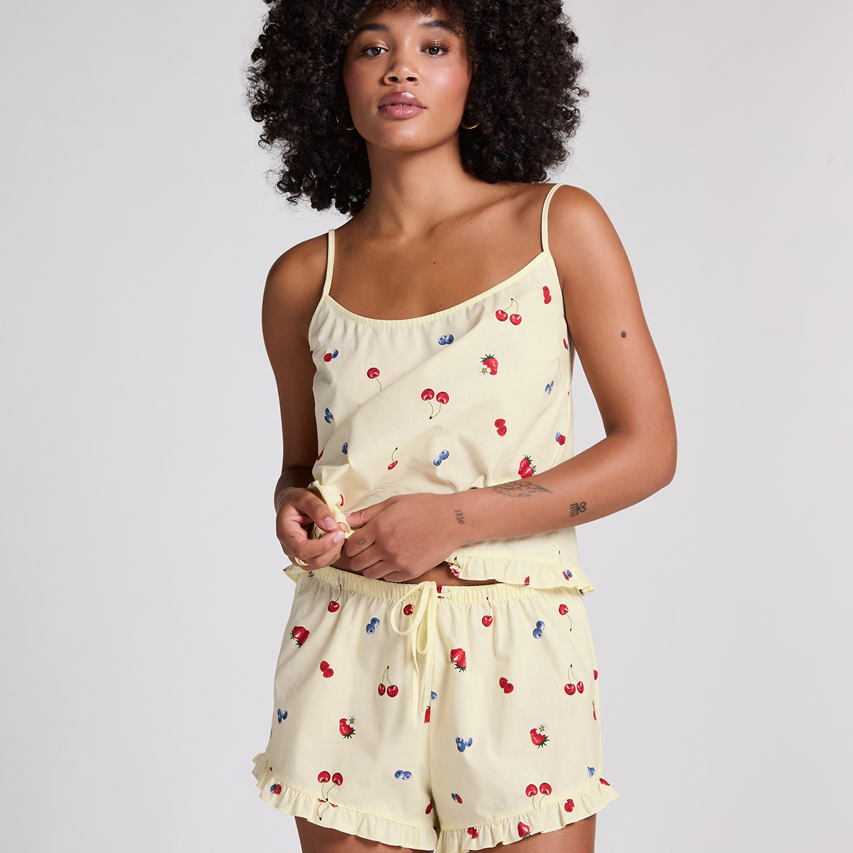 Hunkemöller Kort vävd ruffle shorts, gul